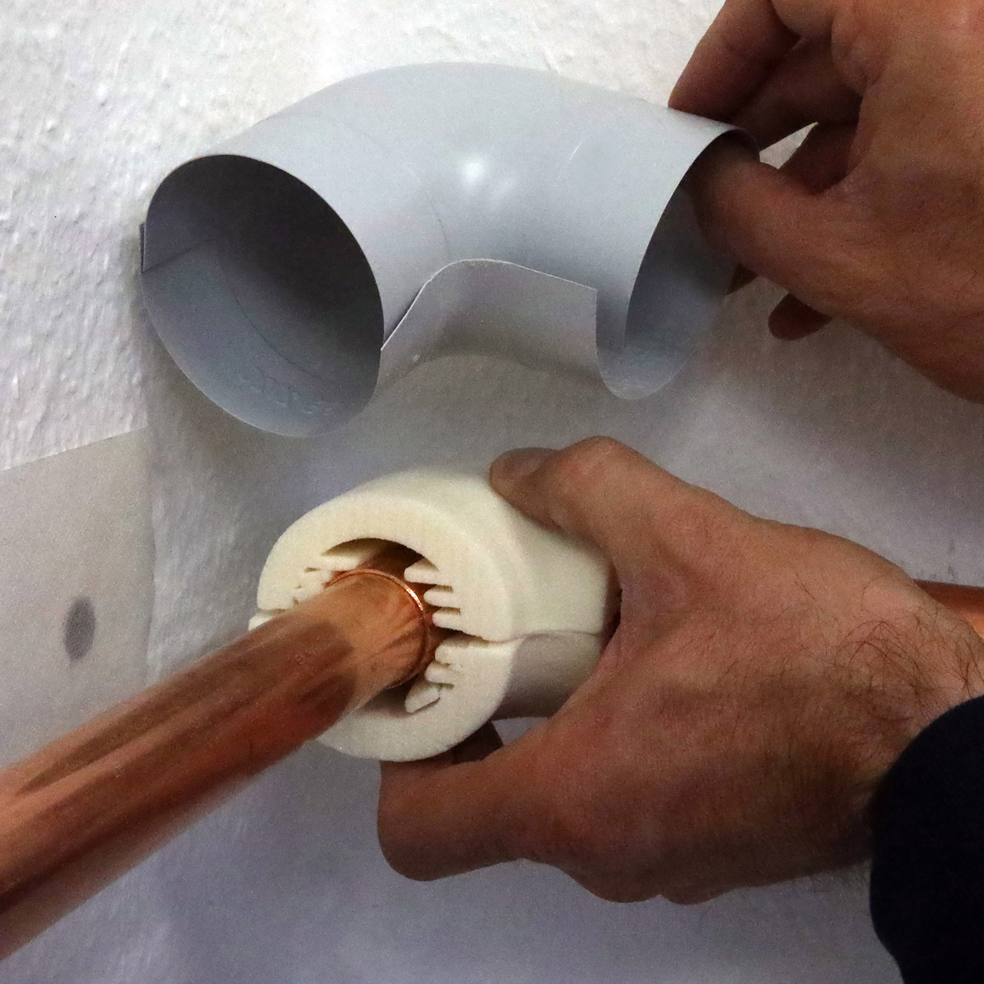 PUR Rohrbogen ist das effektive Dämmungsystem für den Sichtbereich im Sanitär- und Heizungsbereich und entspricht 100 % den Anforderungen der Energieeinsparverordnung (EnEV). Er ist mit einer hellgrauen PVC-Ummantelung und vorgefertigter Isolierdämmeinlage aus Polyurethan-halbhartem Schaumstoff versehen. Einfache Verarbeitung, abwaschbar und stoßfest, niedrige Wärmeleitfähigkeit