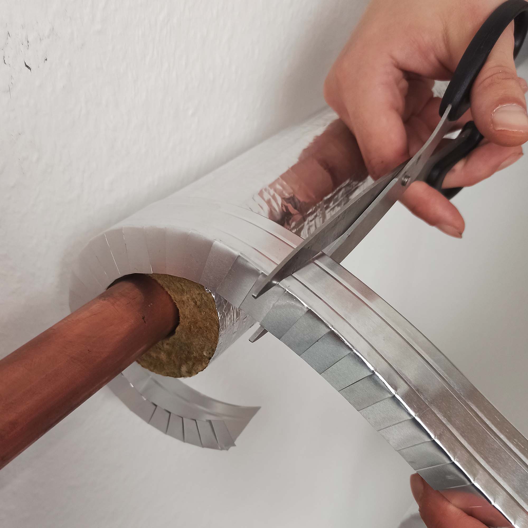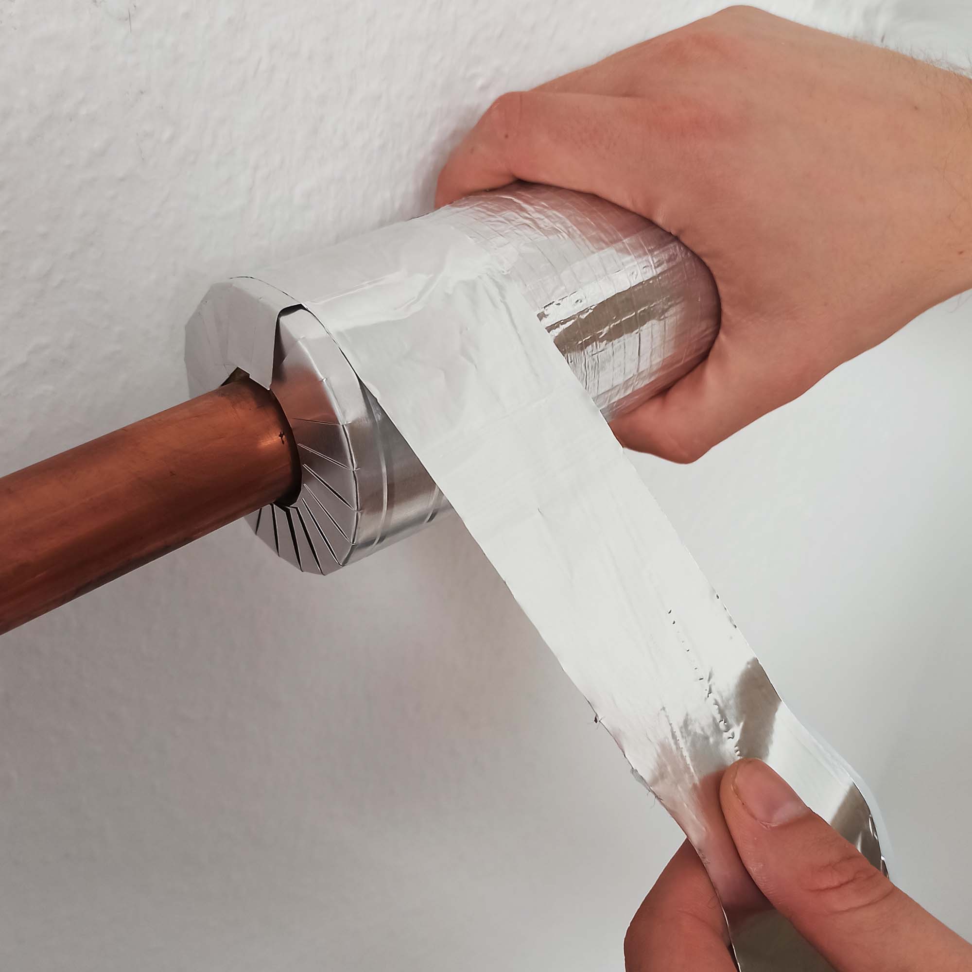 Für die optimale Passform des Bandes ist ein Bewegungsraum von 2 mm zu dem isolierten Rohr erforderlich.