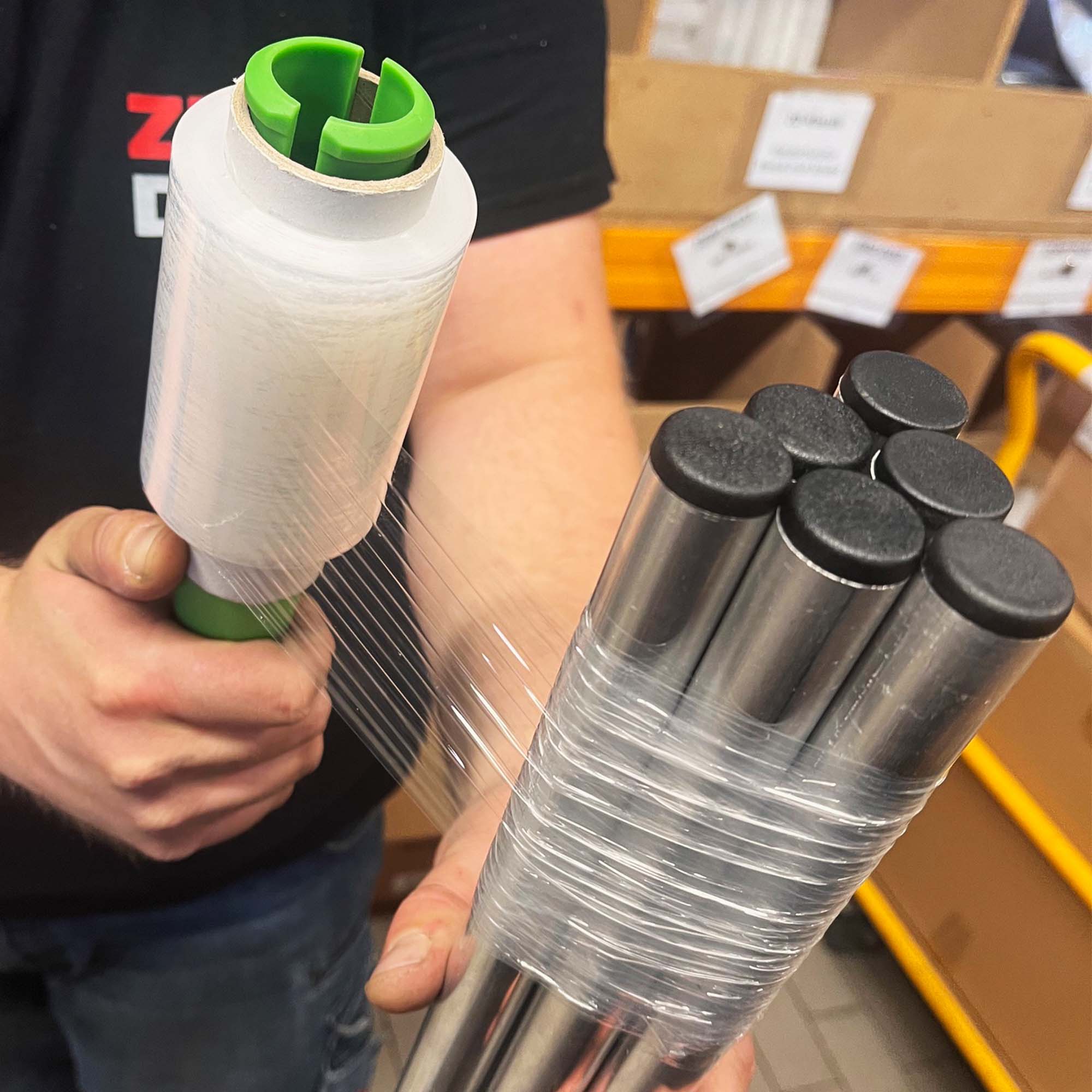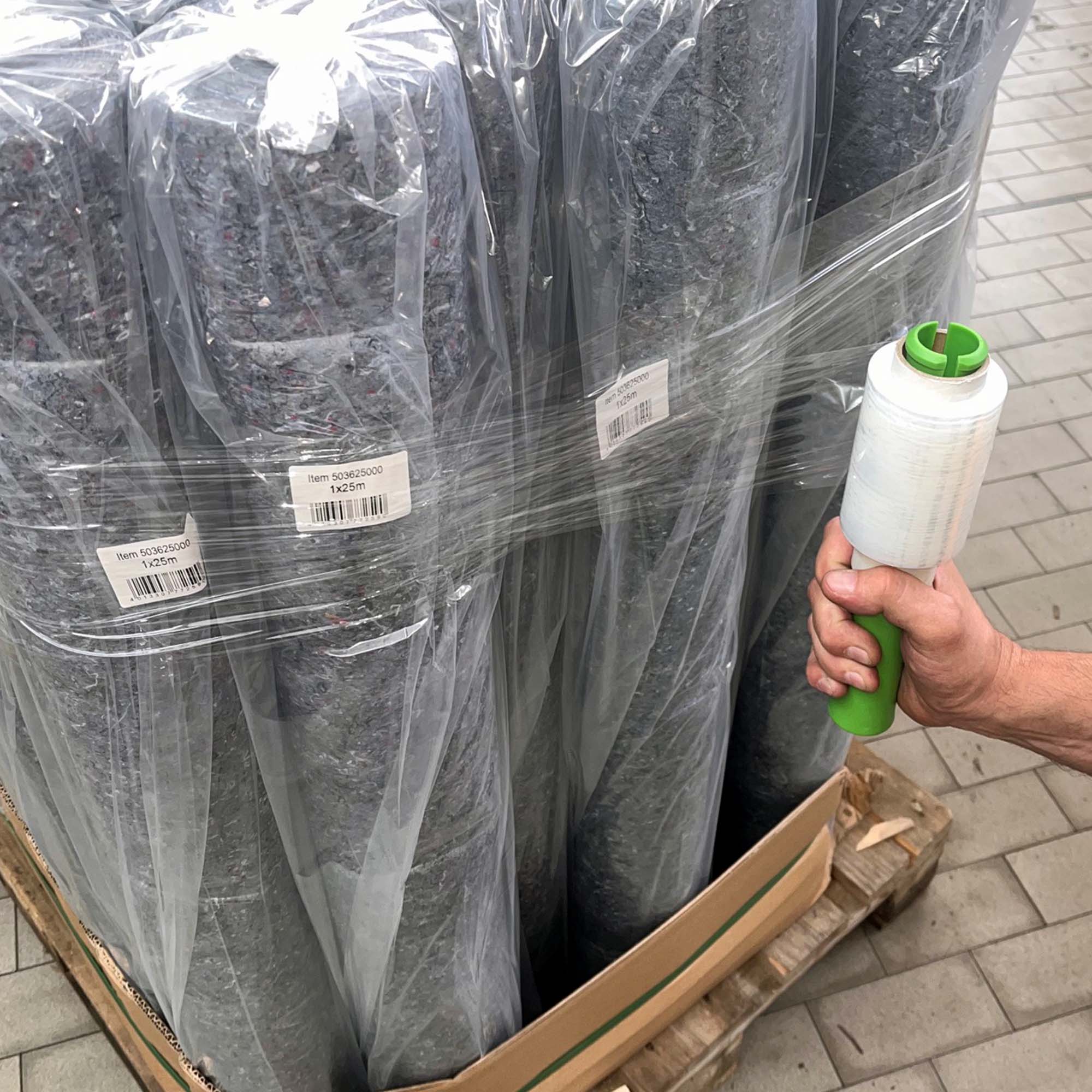 Die transparente und strapazierfähige Mini Handstretchfolie zum schnellen und sicheren Verpacken und Bündeln von Waren, Kartons und Versandpaletten oder zum Schützen gegen Staub, Schmutz und Feuchtigkeit. Besonders dehnfähig mit einer Folienstärke von 23 my.