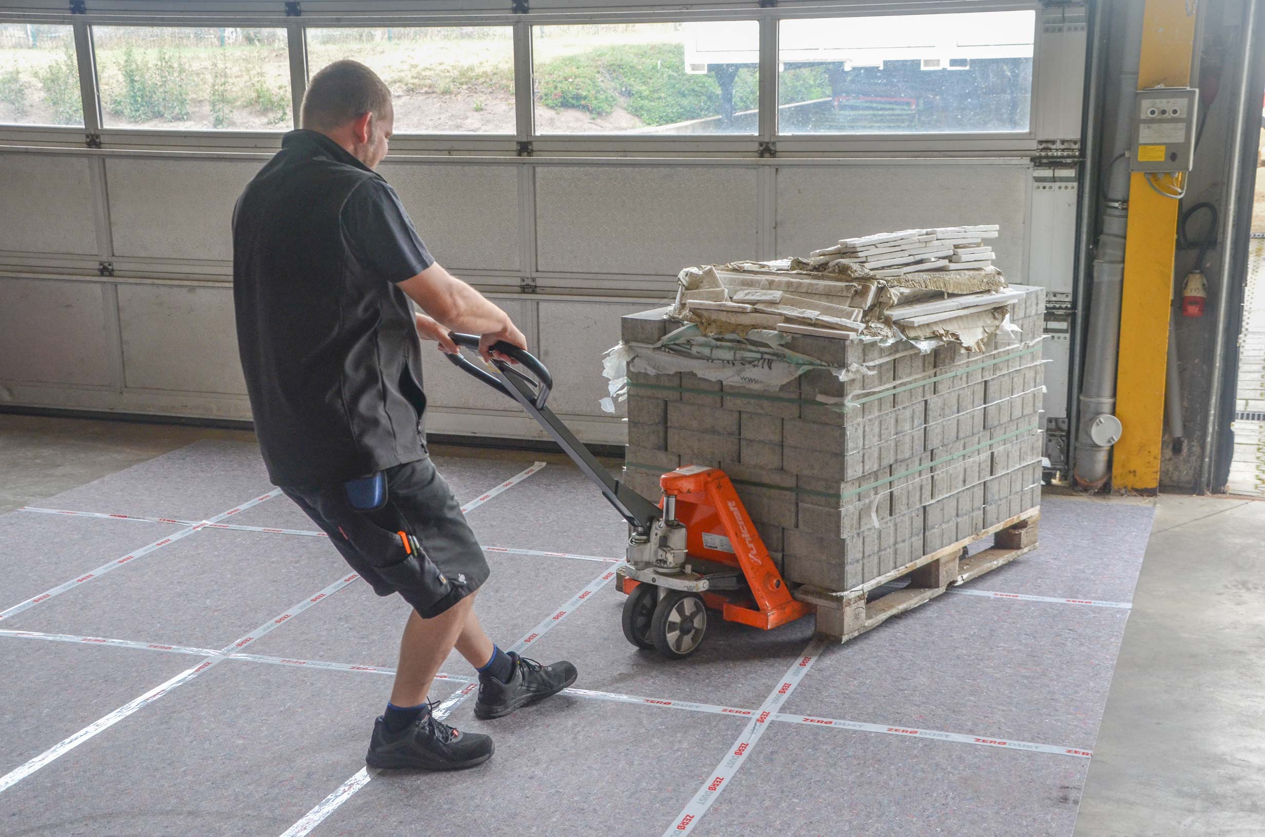 ZERO DUST Robust ist eine dicke, stark belastbare atmungsaktive Vliesfaserplatte für den maximalen Schutz von verschiedenen Oberflächen. Verhindert mechanische Beschädigung verursacht durch Bauschutt, Druckbelastung, rollendes Material, usw. Durch das große Format können auch größere Flächen effizient geschützt werden. Einfaches zuschneiden mit Schere oder Messer. Kann rückstandslos entfernt werden.