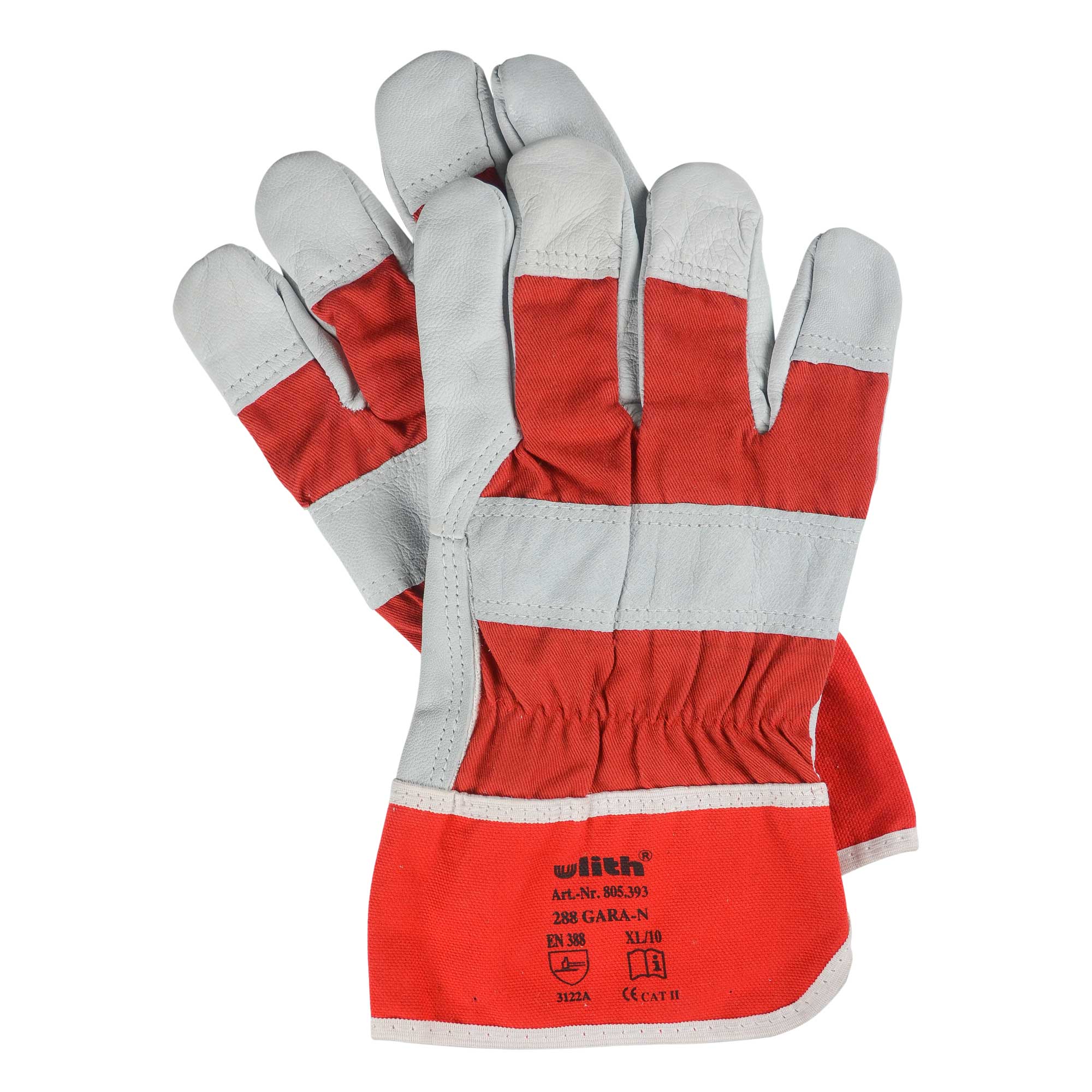 Arbeitshandschuh Vollleder Größe 10 Farbe rot/grau
