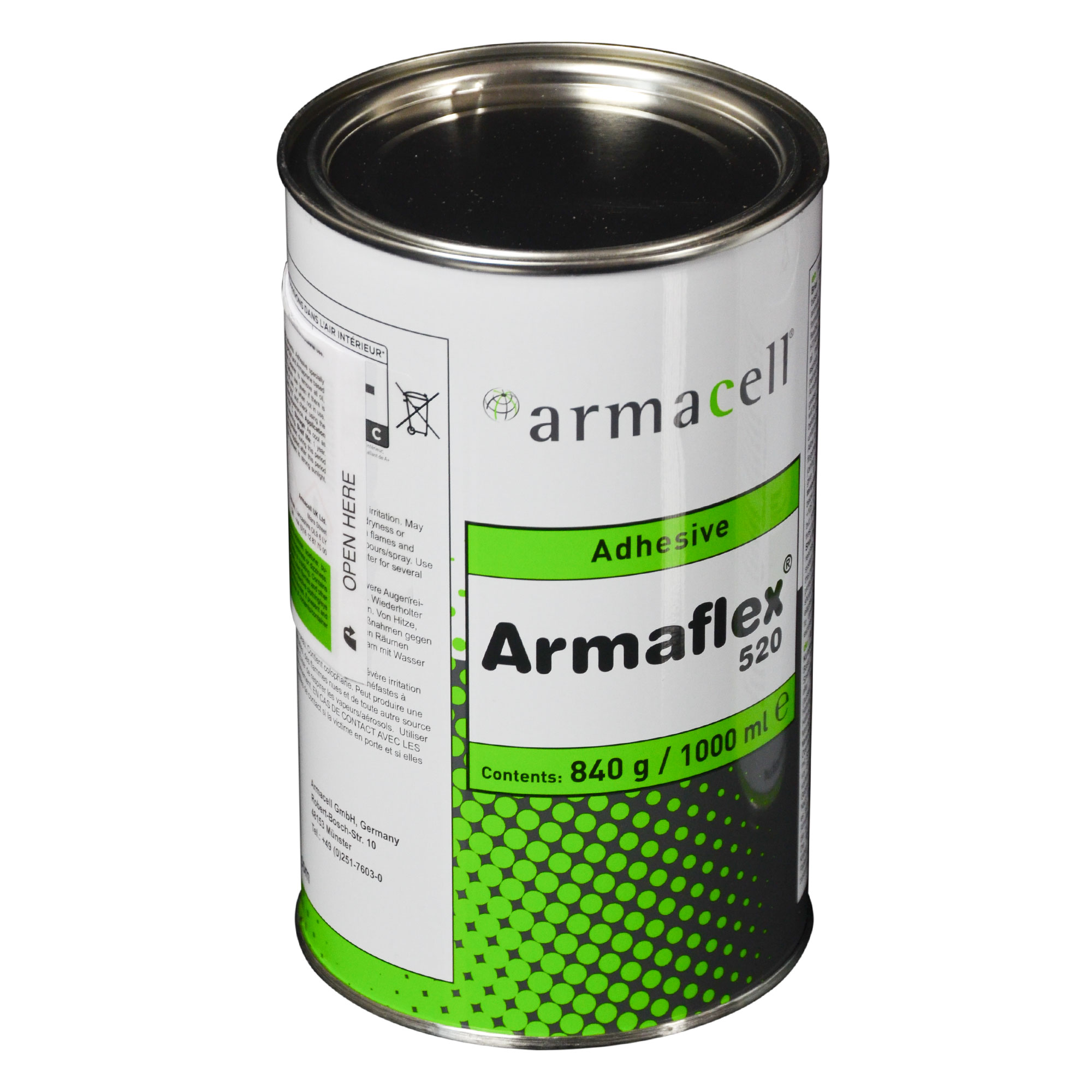 Armaflex® Kleber 520 in der 1,0 Liter Dose für Kautschuk-Platten und Rohrisolierungsschläuche aus Kautschuk.
