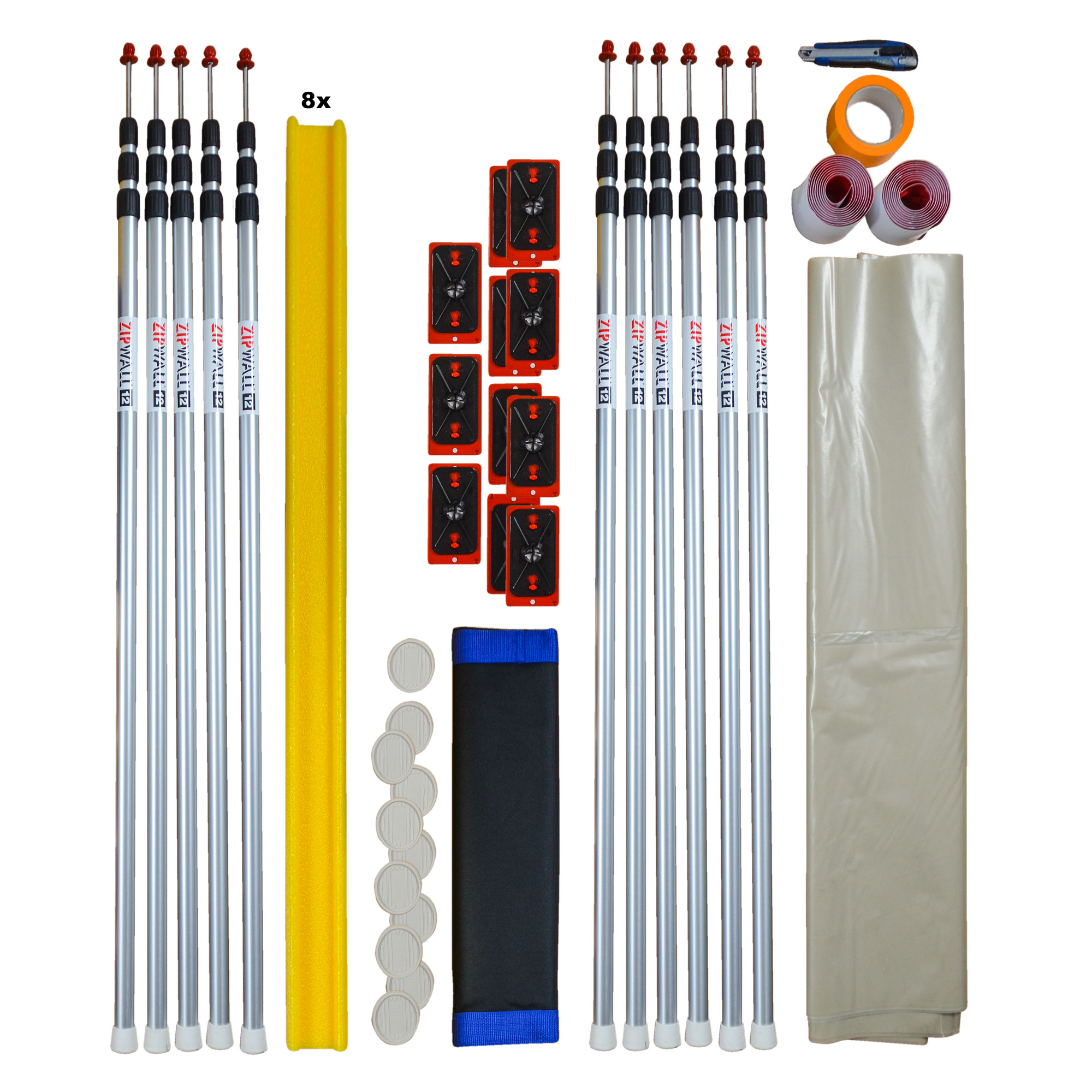 Das Staubschutzwandsystem ZipWall® "Handwerker-XL-Set" bis 3,60 m Höhe x 25 m Länge/Breite beinhaltet: