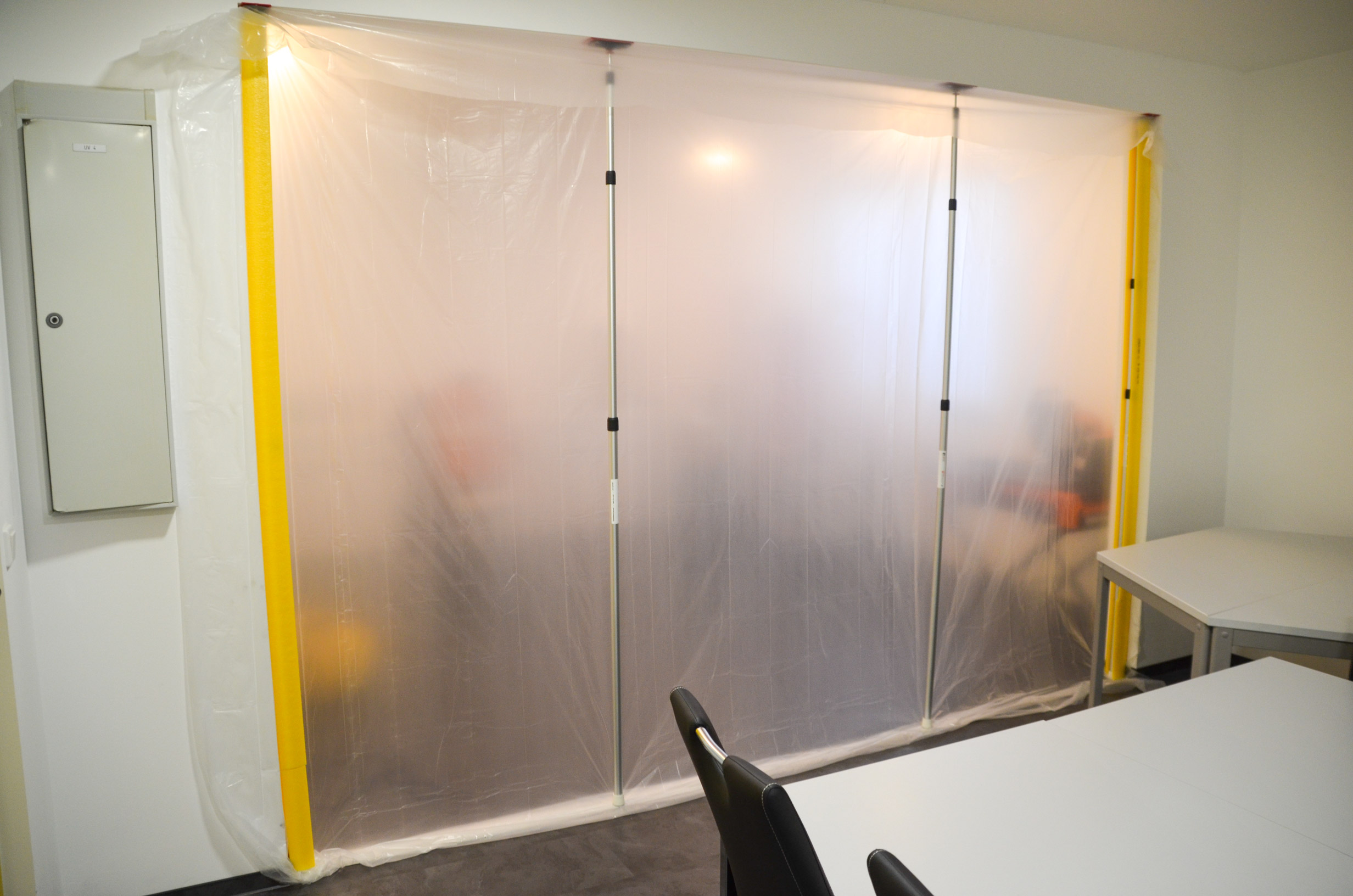 Mit lediglich einer Person schaffen Sie dank einfacher Montage in wenigen Minuten eine Staubschutzwand als Einhausung, Abschottung, Schleuse oder Raumverkleinerung, um die angrenzenden Bereiche oder Räume vor Staub und Schmutz zu schützen. Dies spart zusätzlich Zeit und Geld